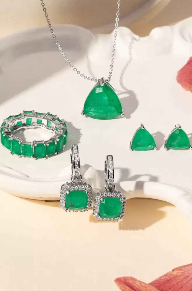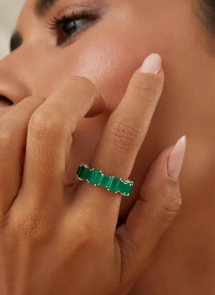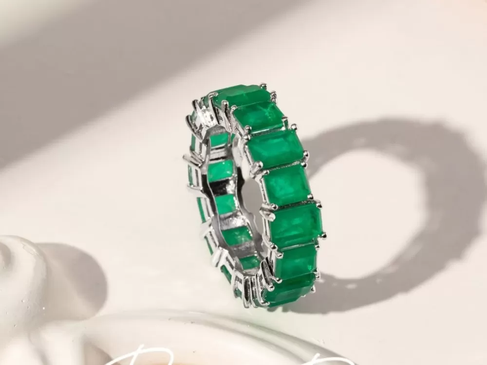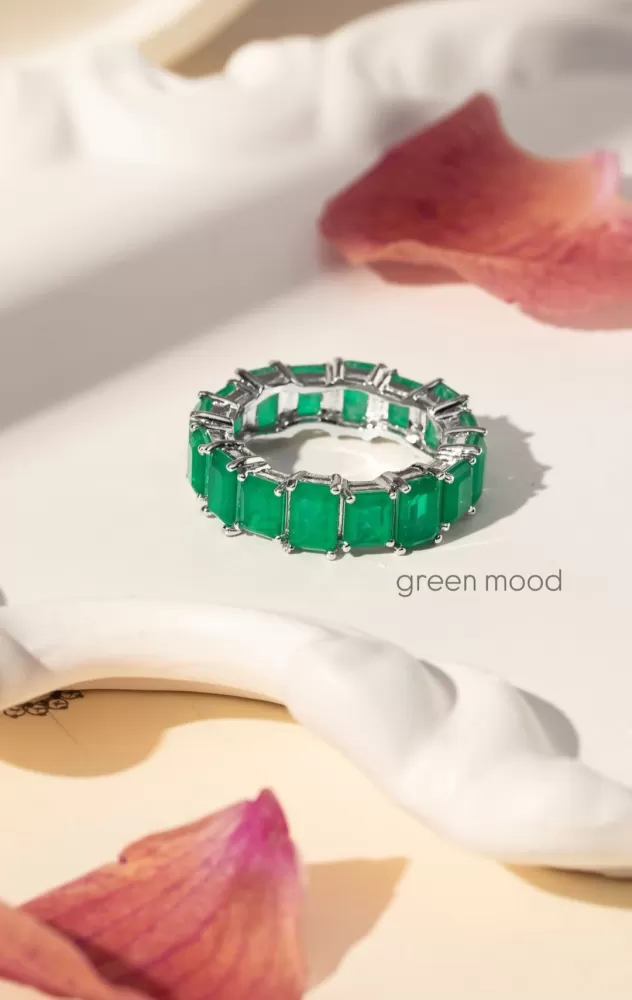 Anel aliança fusion Esmeralda, Ródio Branco.